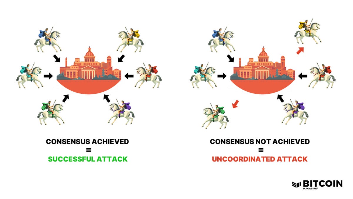So the problem really is, how do the generals verify the truth in a transparent way without there being one 'central' commanding authority of any kind validating the truthfulness of the messages?