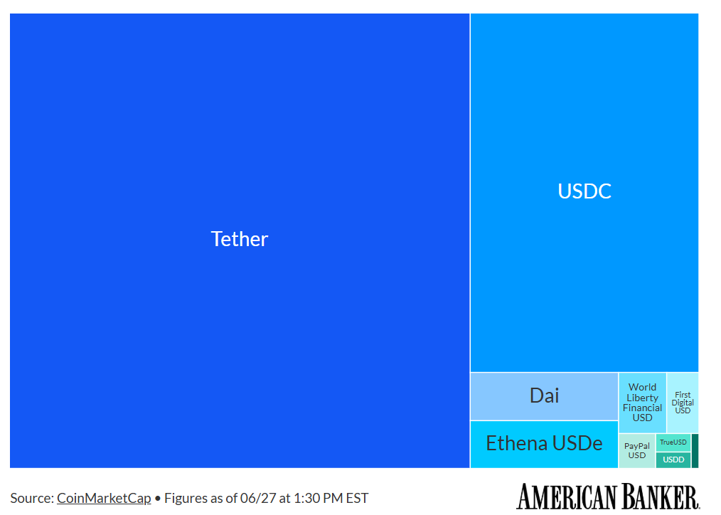 With the Genius Act, all USD stable coins will need to be backed 1:1 by traditional asset reserves such as treasury bills and bank deposits. Those who were burnt in the collapse of Terra, will especially welcome this regulation. The liquidity & credit profile of the reserves has also been spelled out in the regulations, with consumer protection as the key theme of the regulation. It also mandates segregation of reserve funds vs. the issuer’s own funds, better transparency via reporting & audits, as well as stricter tracking of AML compliance.
